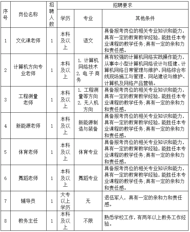 为全面实施人才强校战略和学校标准化建设发展规划、加强学科专业建设,全面提升办学水平,现面向社会招聘有志之士共谋发展。