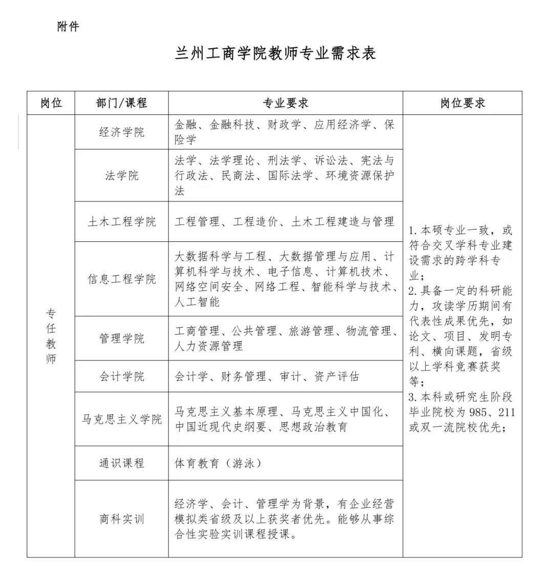 附件:兰州工商学院教师专业需求表