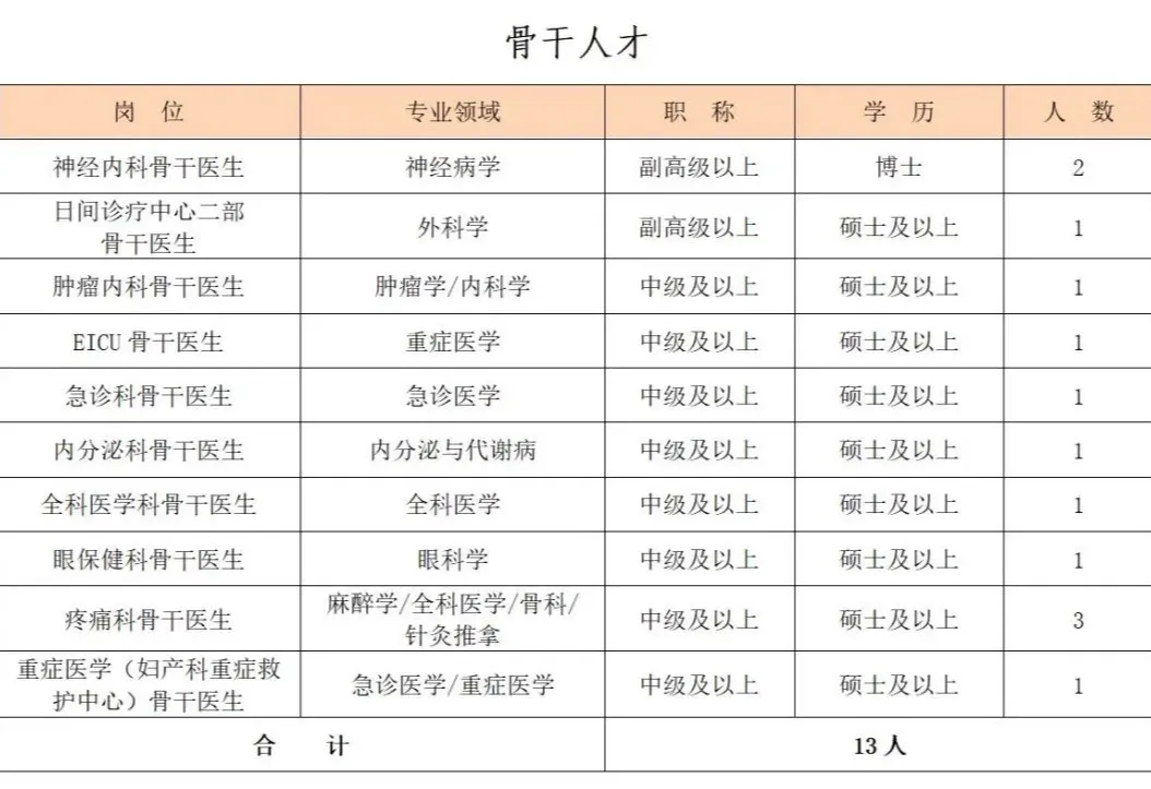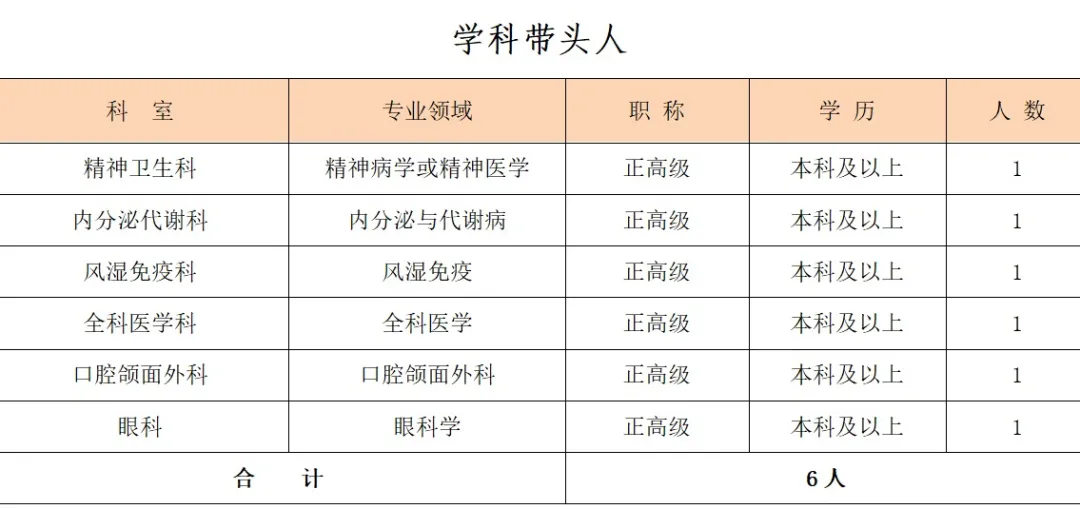 1.学科带头人:本科及以上学历学位,正高级职称,具有省级三甲医院工作经验。