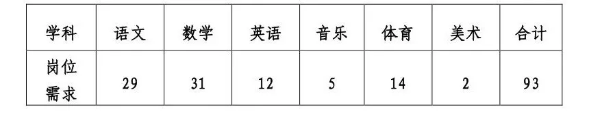 备注:*** 终学科岗位需求待城区小学拟选调进入城区初中的人员确定后,根据缺口调整。