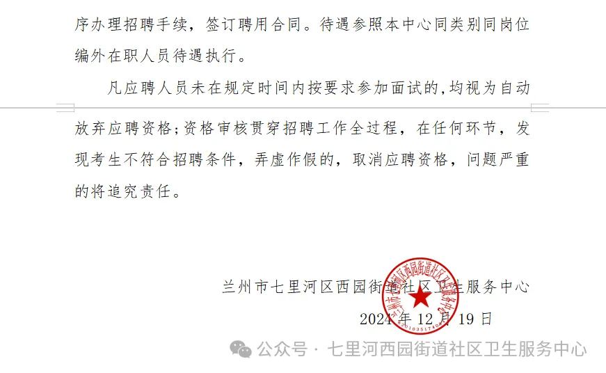 2054年甘肃兰州市七里河区西园街道社区卫生服务中心招聘编外工作人员公告
