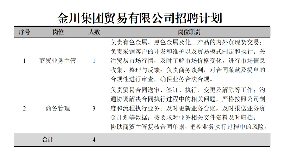 4.工作经验:商贸业务主管岗位需具有3年及以上大宗商品贸易或期现、期权交易相关工作经验。