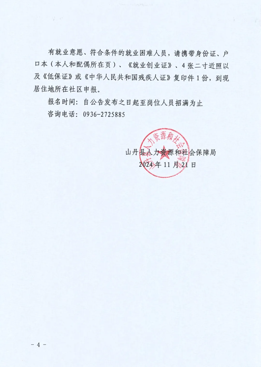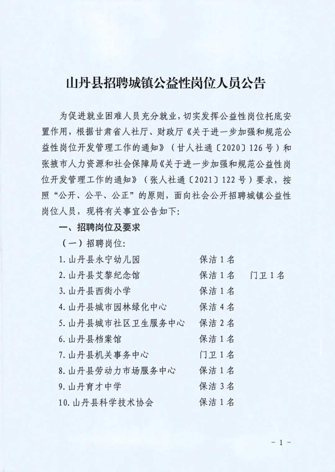 2024年甘肃张掖山丹县招聘城镇公益性岗位人员17人公告